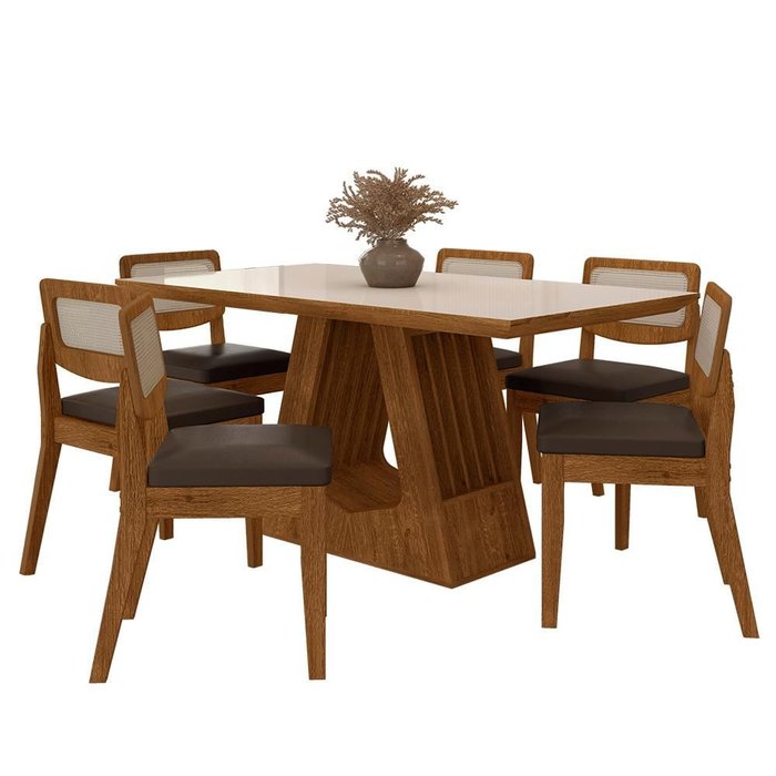 Mesa Santiago com 6 Cadeiras Sextavada Frei/off/corino Marrom - M.a Freijó/off Pre/corino Marrom