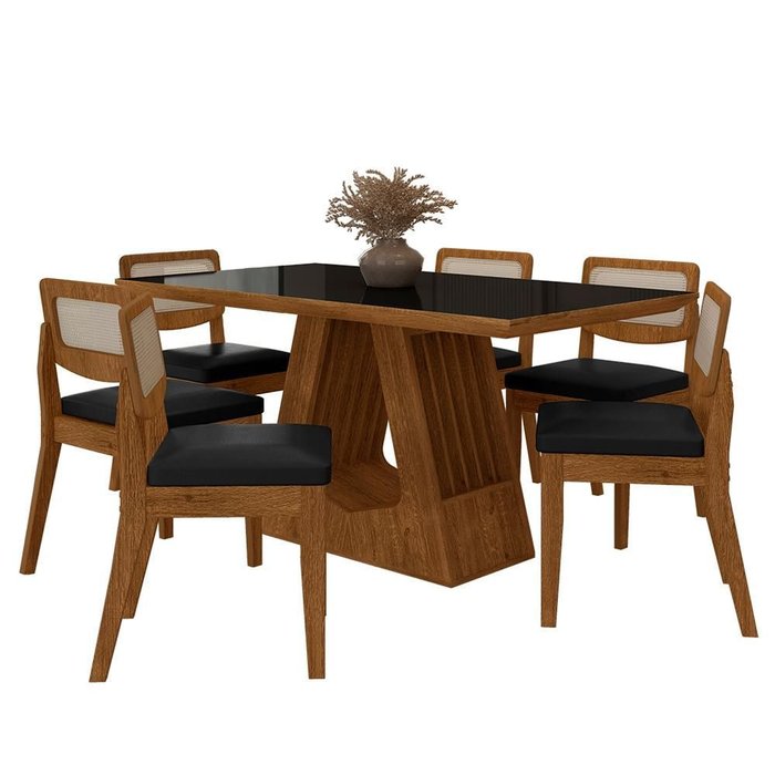 Mesa Santiago com 6 Cadeiras Sextavada Frei/preto/corino Preto - M.a Freijó/preto/corino Preto Preto/Preto