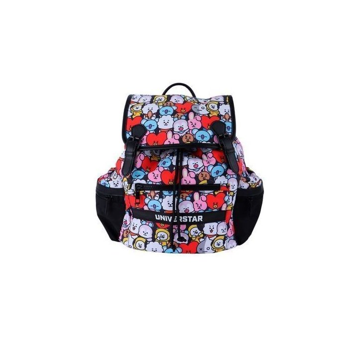 Mochila Infantil Personagens Bt21 Fechamento Tipo Saco Conforto Leve Escola Passeio preta
