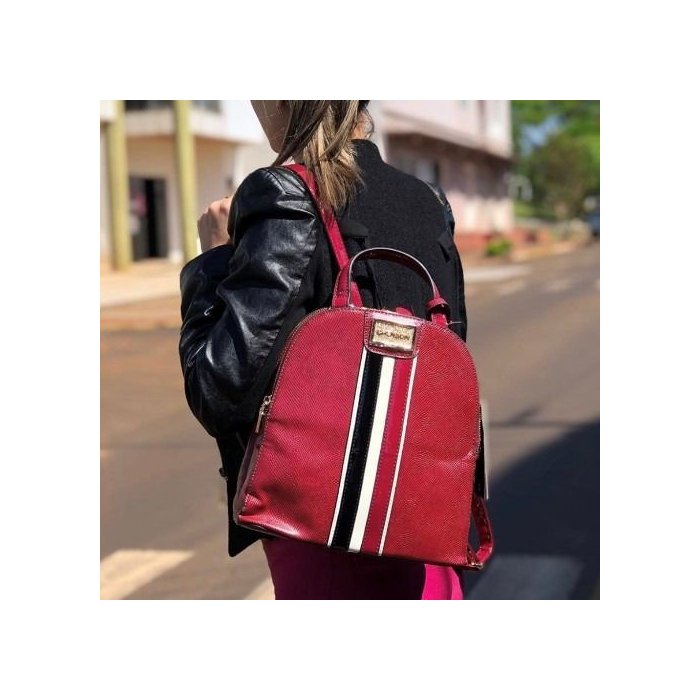 Mochila Poliuretano Chic com Listras Chenson Bordô