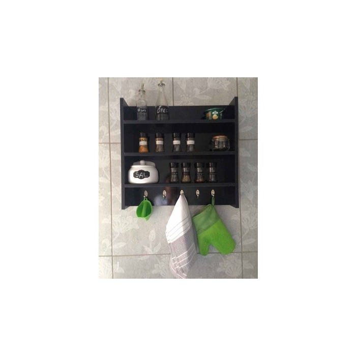 Nicho Com Prateleira Para Cozinha E Afins Preto Com Ganchos Preto