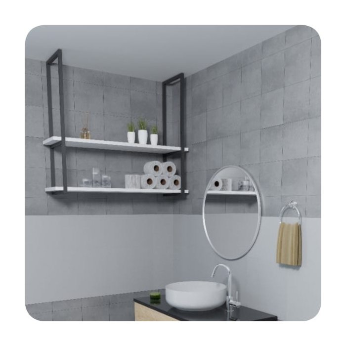 Ter um banheiro organizada traz leveza e praticidade para sua rotina, para ela fique em ordem, é necessário o uso de alguns produtos. O nicho granada de teto é indispensável, além de dar um toque especial na decoração.Produzido em aço com camada anti-ferrugem de fosfatização e pintura eletrostática epóxi, com prateleiras de MDF de primeira qualidade.CARACTERÍSTICAS TÉCNICAMaterial: Aço e MDF.Dimensões do tubo da estrutura: Tubo quadrado 20x20 mm.Acabamento da Estrutura de aço: Pintura Eletrostática EpóxiCor dos Arcos: Preto FoscoAcabamento do MDF: Branco