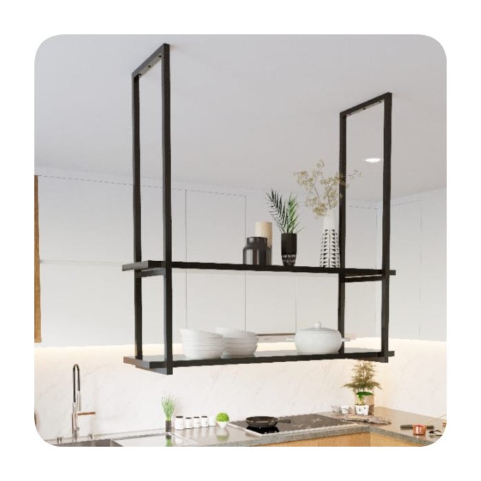 Nicho Preto Prateleira Suspensa Teto Cozinha Preta 60cm