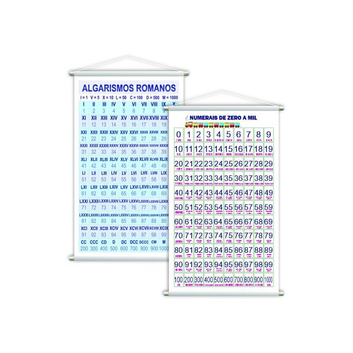 Numerais 0 a 1000 + Algarismos Romanos Kit 2 Banners 80x50cm