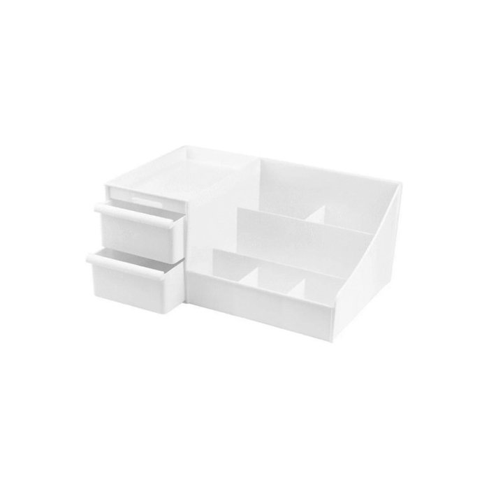 Organizador de mesa multifuncional com gavetas Para organizar de forma prática sua mesa deixando visível suas canetas régua lápis facilitando a escolha. Por ser um organizador muito versátil é possível armazenar outros objetos como cosméticos, maquiagem, esmaltes, medicamentos deixando sua penteadeira ou mesa mais funcional com itens a fácil acesso. Outro ponto alto desse organizador são suas gavetas, ela tem capacidade para objetos menores como clips, elásticos, lenços, cotonetes etc... Material: Plástico