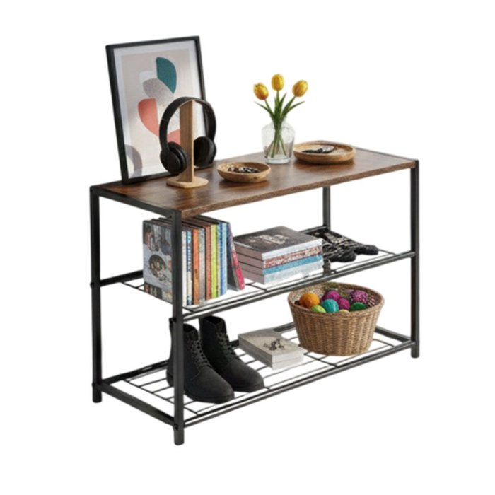 Organizador Prateleira Sapateira 3 Andares Sapatos Sandalia Decoracao Hall Entrada Casa Marrom Rústico