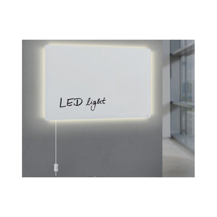 Painel Lousa De Vidro Temperado Branca 120x90cm com led