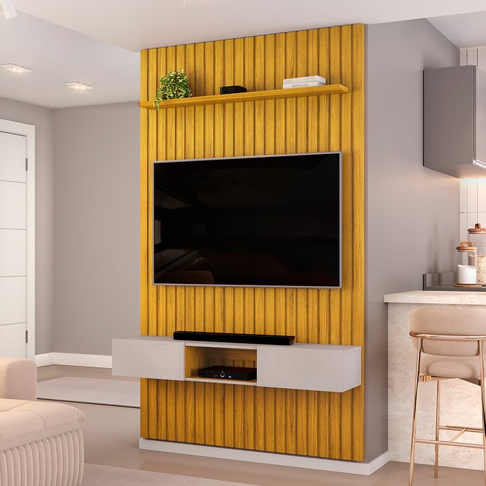 Painel para Tv até 60 Polegadas com Bancada Suspensa 02 Portas Trento 1.4 Cedro Ripado Bali Dj Móvei