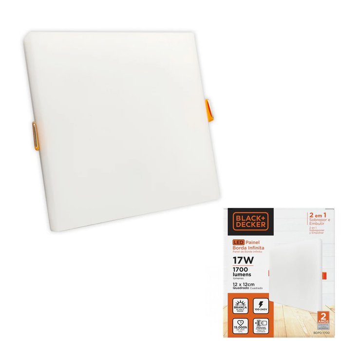 Painel Plafon Led Borda Infinita Black + Decker Quadrado 17W Branco Quente Branco
