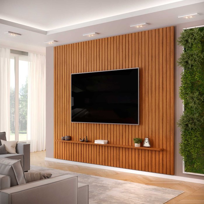 Painel Ripado para Tv até 75 Polegadas com Prateleira Trento 275 Freijó - Dj Móveis