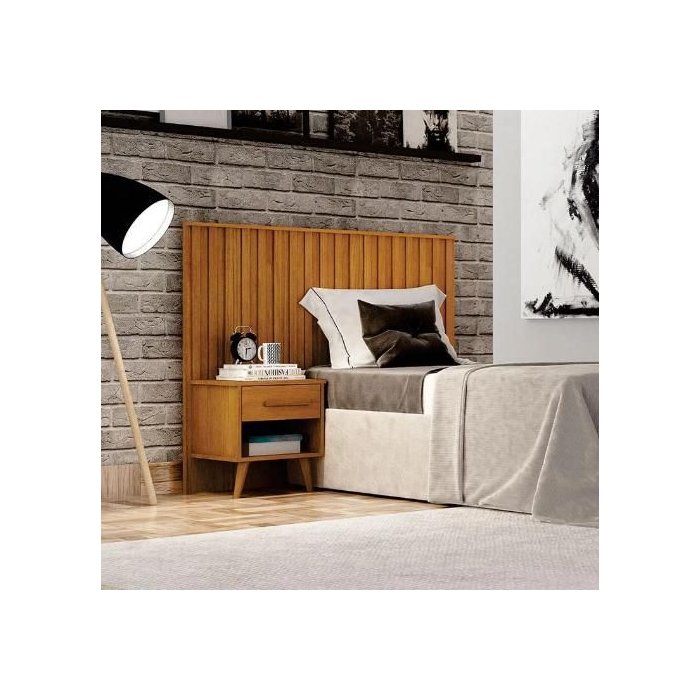 Painel Solteiro Milano com Mesa de Cabeceira Ripada Leifer