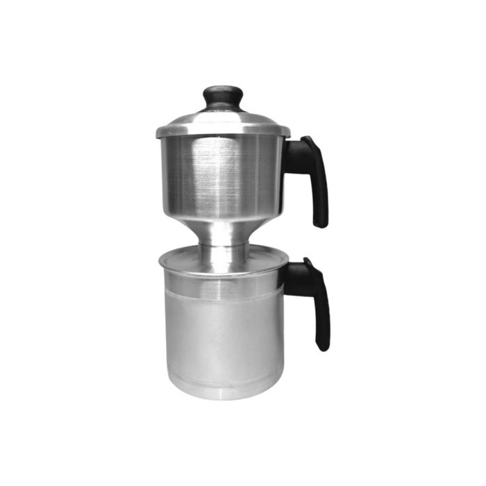 Composto por um caneco em alumínio reforçado para ferver água e duas peças de alumínio para fazer o cuscuz com respectivo cabos de baquelite, serve também como legumeira.