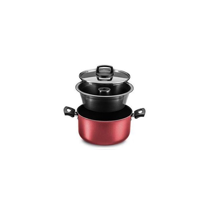 Panela de Pudim antiaderente 20 Marca: MTA Modelo: ANTIADERENTE Cor: Cereja A forma de pudim e caçarola para banho maria cereja- formam um conjunto feito em aluminio antiaderrente com tampa de vidro temperado com saída d evapor,A forma possui furo difusor de calor, o que permite cozinhar mais rapido, com a panela caçarola para o aquecimento banho maria. Capacidade da caçarola-2,7 litros Capacidade da forma-1,3 litros Capacidade do conjunto-2,8 litros antiaderrente 5 camadas