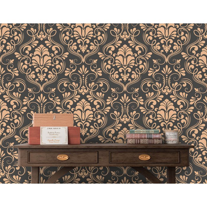 Papel de Parede Arabesco Cinza e Laranja Arte Destaque 2 Metros Cinza e Laranja