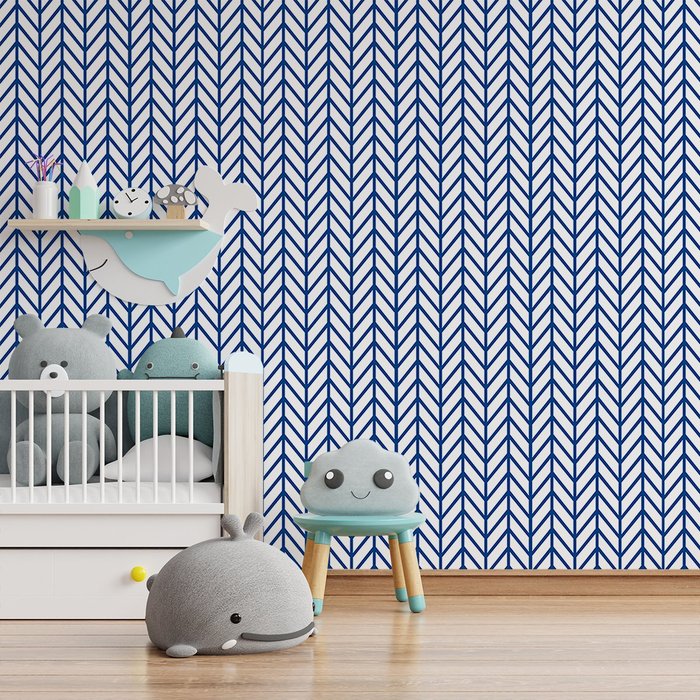 Papel de Parede Chevron Azul Quarto Menino Rolo 3m