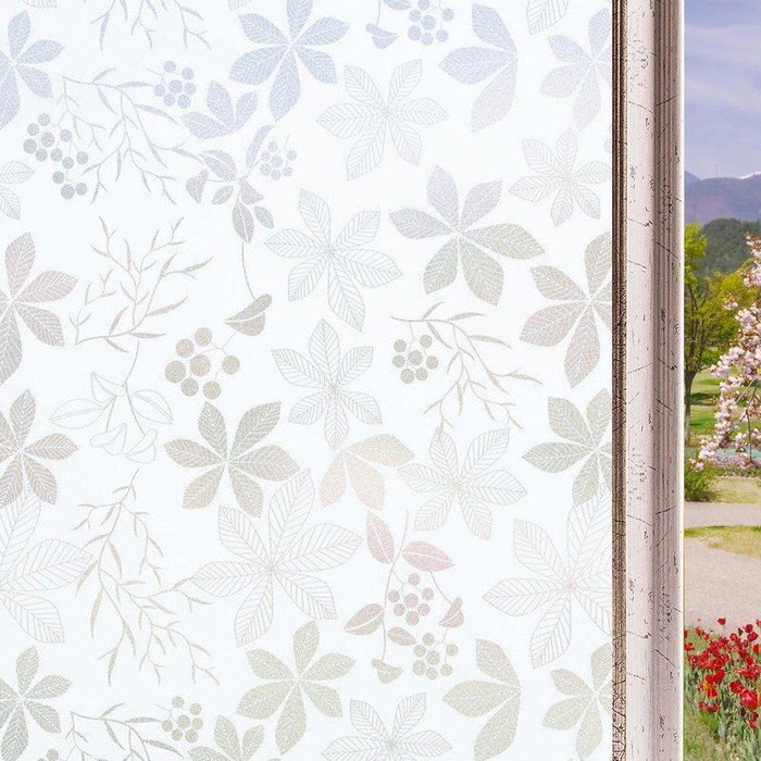 Pelicula Adesivo Eletrostatica Vidro Jateado Branco com Folhas