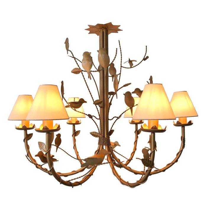 Pendente Rústico Para Salas de Jantar Com Cúpulas de Algodão Libertas Rosas Artesanato Passarinhos