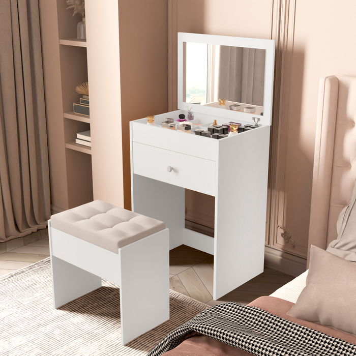 Penteadeira Organizadora com Espelho e Gaveta Banco Incluso