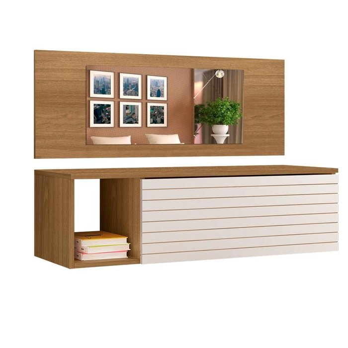 Penteadeira Simples Suspensa com Espelho Nature Branco Joy Peternella