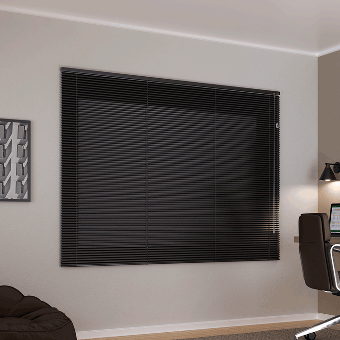 Persiana Horizontal 25mm Alumínio Crisdan sem Furos Aparente Largura 1,20 X 1,00 Altura Preta Preto