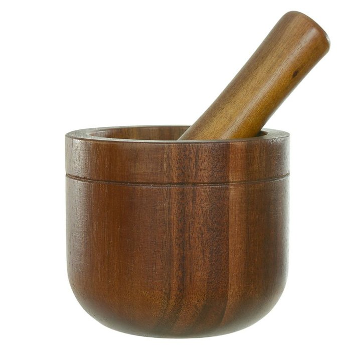 Pilão Madeira Acácia 16x11,5cm com 2 Peças Bege Flor Arte