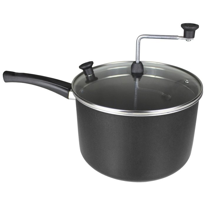 A pipoqueira de alumínio é revestida com antiaderente, proporcionando praticidade e segurança no preparo de deliciosas pipocas.Possui cabo de baquelite resistente ao calor e sua tampa é de vidro e contém uma manivela igual as pipoqueiras profissionais. Permitindo o preparo de pipoca doce, salgada e até pipoca gourmet.Use sua imaginação, agrade crianças e adultos.