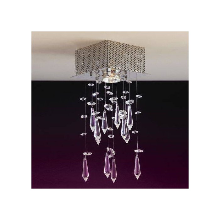 Plafon Sobrepor de Cristais Quadrado Obelisc 1 Lâmpada Bronzearte Transparente