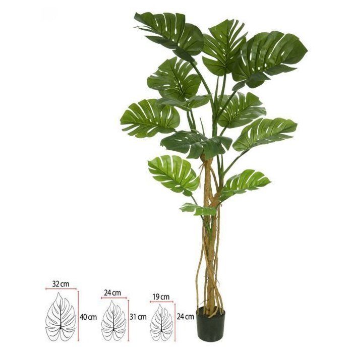 Planta Artificial Arvore Costela de Adão Real Toque Pu C/pote X12 Verde 1,80cm