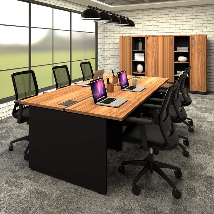 Plataforma de Trabalho 6 Lugares 2,70m Pé Painel Nogal P F5 Cor:nogal com Preto