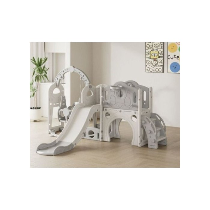 Playground Infantil 6 em 1 Parquinho 224cm Escorregador:cinza Cinza