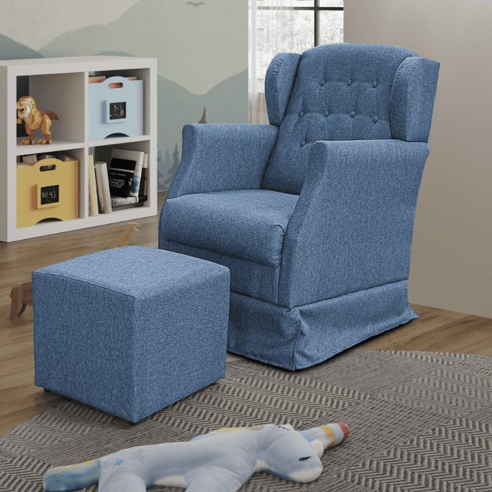 Poltrona Amamentação Balanço Descanso Manu com Puff Linho Azul Twdecora