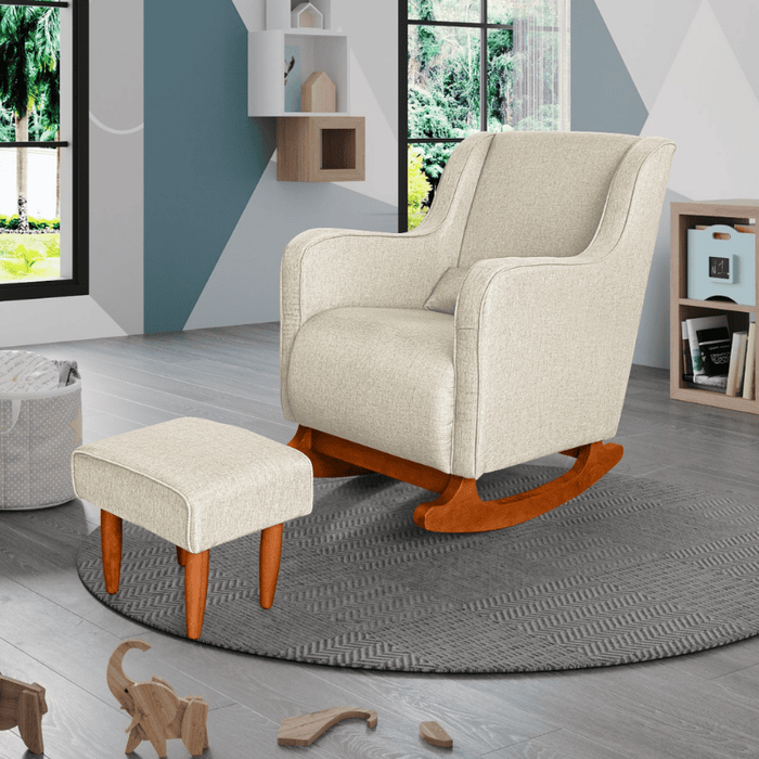 Poltrona Amamentação C / Balanço Cadeira Descanso Aquila com Puff Linho:bege