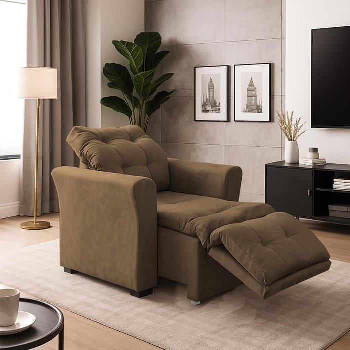 Poltrona Cadeira Papai Mamãe Idoso Reclinável e Retrátil Bellagio Capuccino