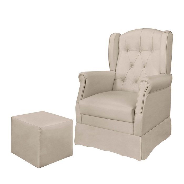 Poltrona de Amamentação Balanço com Puff Reto Amélia Suede Bege - Loja Sheep