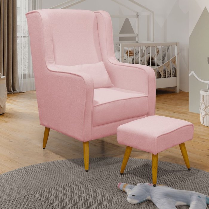 Poltrona de Amamentação Pé Palito Eduarda com Puff - Lg Decor Baby Linho Rose