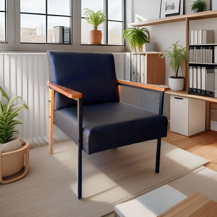 O charme da Poltrona Fontana fica ainda mais evidente em seus pés e braços , feitos em uma combinação desenvolvida de tubo quadrado industrial e madeira maciça . Essa fusão de materiais confere um visual contemporâneo e refinado, perfeito para compor ambientes elegantes e modernos.
