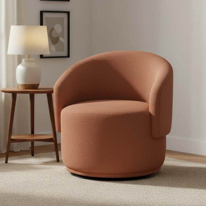 Poltrona Decorativa Giratória Sala de Estar Recepção Bouclé Jasmine Terracota