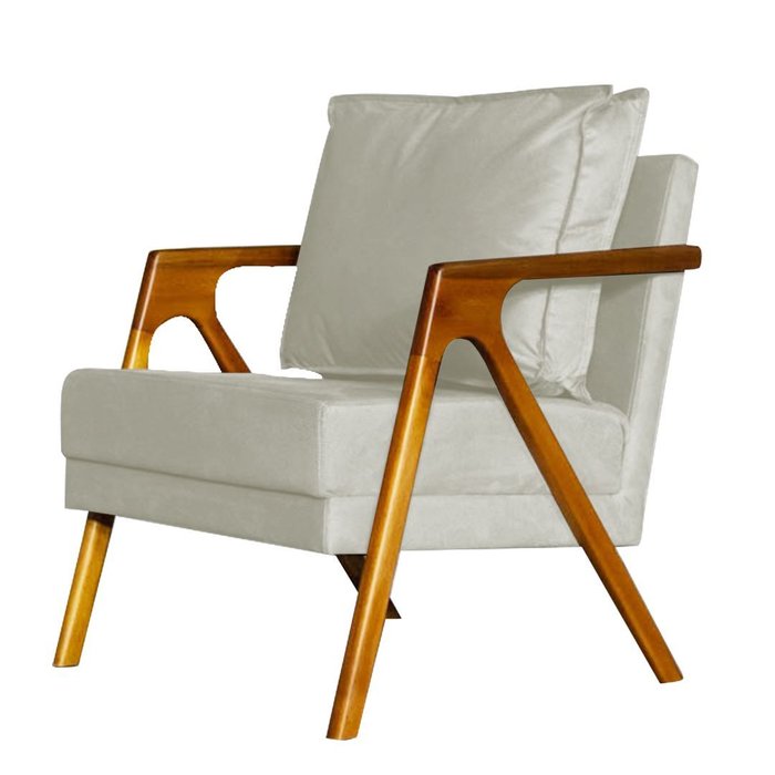 Poltrona Decorativa Mona Premium Madeira Maciça Corino Bege