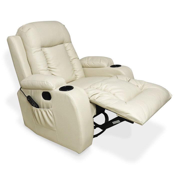 Poltrona do Papai com Massagem e Aquecimento Reclinável Austin Balanço Giratória Pu Bege G31 - Gran