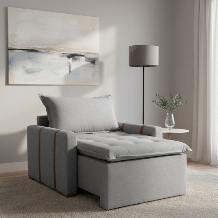 A nossa Poltrona do Papai é o convite perfeito para relaxar com conforto todos os dias! Com design elegante e um toque clássico que combina com qualquer ambiente, ela une funcionalidade e bem-estar. Seu mecanismo retrátil e reclinável permite ajustar a posição ideal para assistir TV, ler ou simplesmente tirar um bom cochilo. Além disso, seu estofamento macio e estrutura garantem aquele abraço de conforto que transforma o momento de descanso em puro prazer. Seja na sala, no quarto ou no home office, a poltrona que vira cama é a peça que vai deixar seu espaço mais aconchegante e cheio de personalidade.