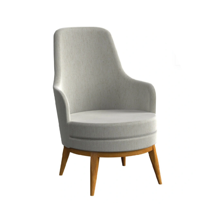 Estrutura em madeira maciça de eucalipto. Concha em MDF ergonômico, estofada com espuma de boa densidade e revestida com tecido de alta qualidade.