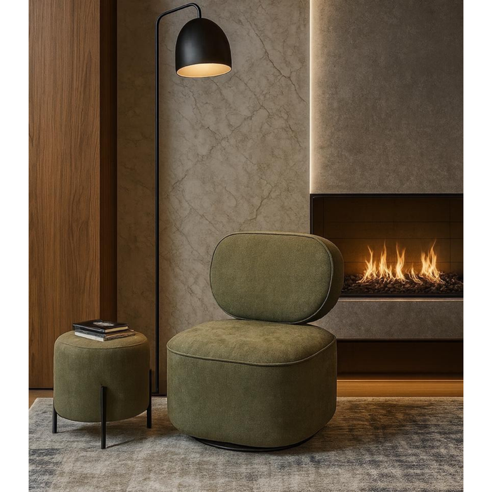Poltrona Giratória com Encosto Curvo e Base Estofada Capri – Exclusiva Linho Verde