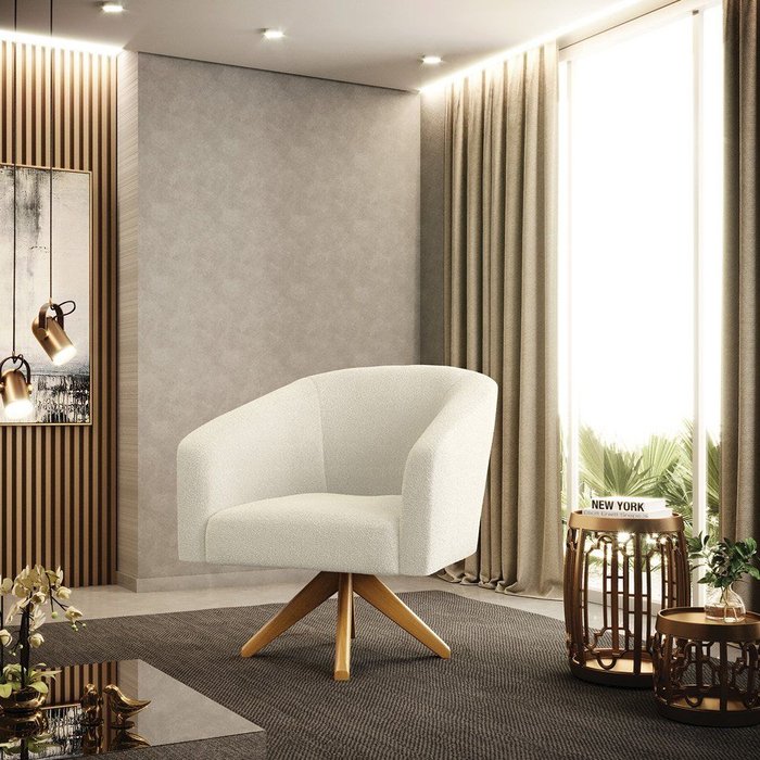 Poltrona Giratória Stella Bouclê Bege Base de Madeira Ma30 - D'rossi Bege