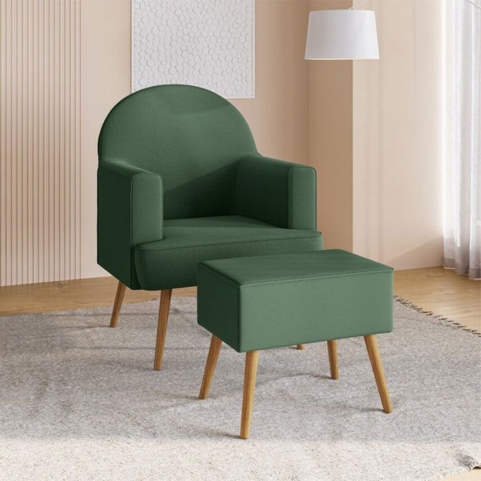 Poltrona Luxor com Puff em Veludo e Pés em Madeira -Bella Just Time Verde