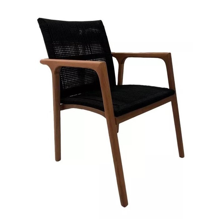 Cadeira Palmeira em corda náutica, pés e braço de madeira e estrutura do assento e encosto em aluminio. Cadeira confortável e elegante para área interna de sala de jantar, pergolado, varanda, sacada, sala e cozinha.