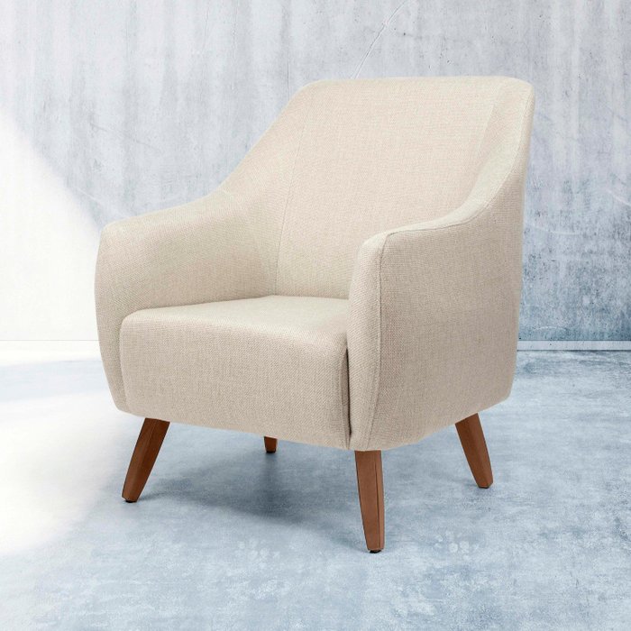 Poltrona Tecido Linho Pés Madeira Paloma Bege Rústimo