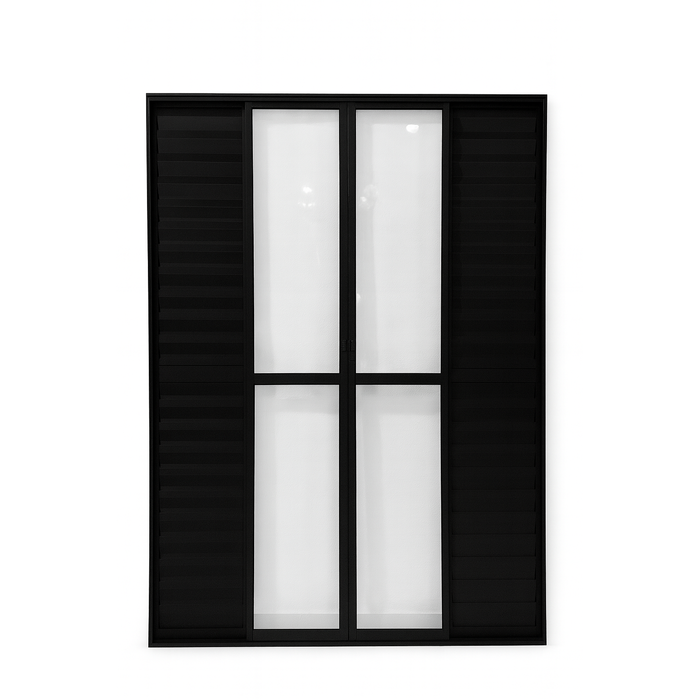 Porta Balcão 6 Folhas Aluminio Preto C/ Trinco 2,10x1,80 Preto