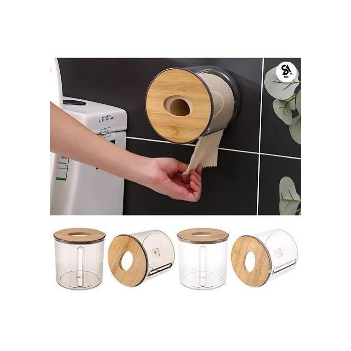 Porta Papel Higiênico Redondo Tampa Bambu Organizador Banheiro Sustentável Durável Prático Estilo