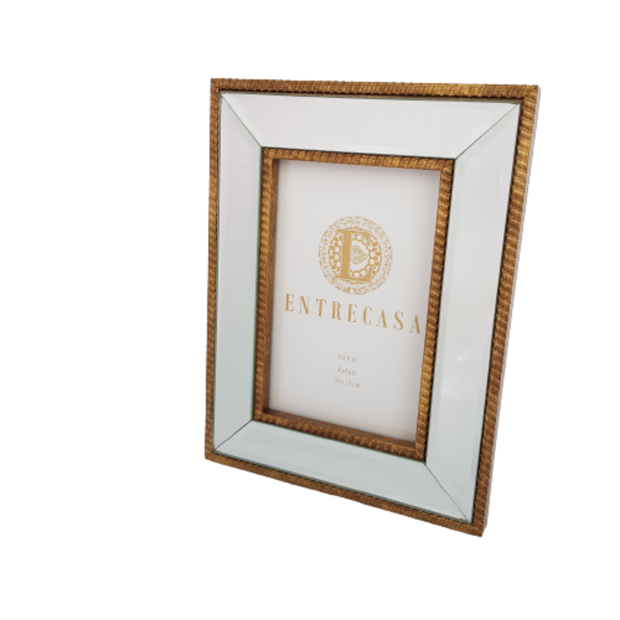 PORTA RETRATO DOURADO COM ESPELHO BISOTÊ 10 x 15cm - COMPORTA FOTOS 10 X 15cm ACOMPANHA PRESILHAS PARA PENDURAR
