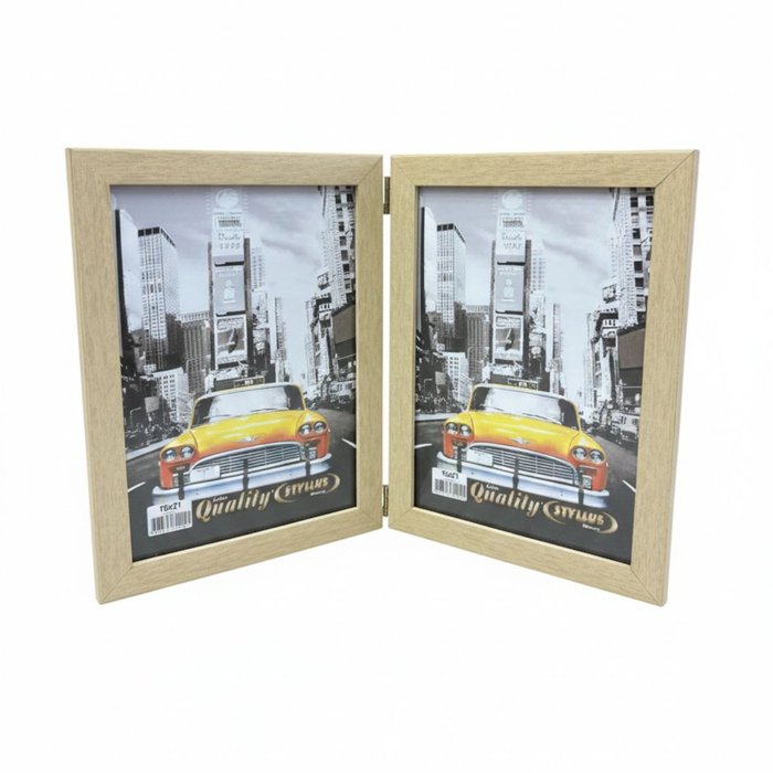 Porta Retrato Duplo Vertical 15x21 Moldura Madeira Premium:madeira Natural